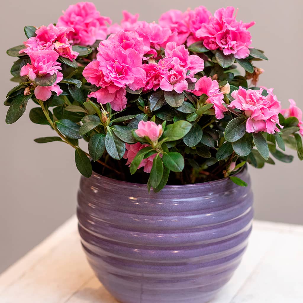 Planta Azalea, planta de flores con base decorativa que puede estar tanto en un interior luminoso com en un exterior sombrío.
